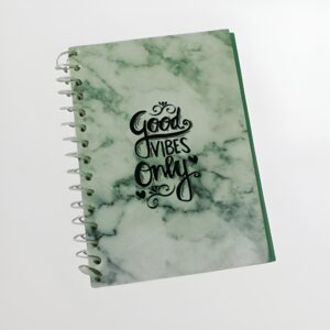Cute spiral notebook with “Good Vibes Only” design for notes and journaling.